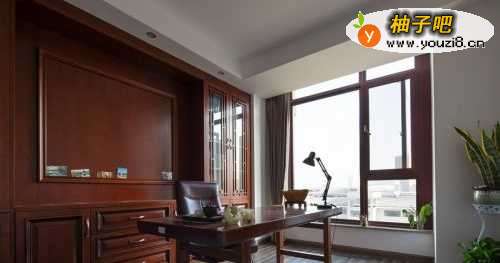 11这间独立书房整整齐齐地摆满了书籍。新中式的书房设计古色古香,又不失优雅沉稳的内涵,满墙的书柜设计对图书的收纳和作品的展示功能均能满足。一方远离喧嚣的静地,读书,研究,做学问,都是特为李先生量身定制的宁静安详。