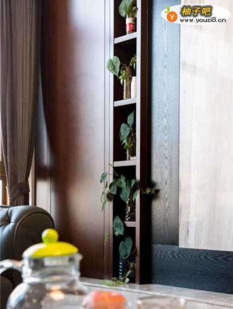 5深色的木铝储物柜被一抹新鲜的绿色点燃,木纹肌理清晰可见。引光入室,岁月静好,最好的时光陪伴最亲近的人。删繁就简,去伪存真,做“减法”的客厅用最少的语言静静诉说着平凡生活的深刻内涵。