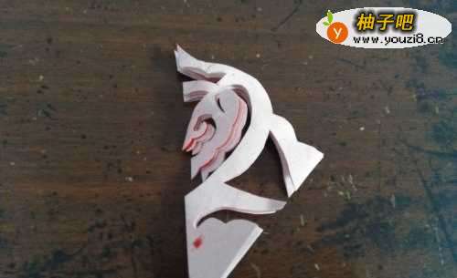 4把斜边向着右手边,在上边画上要剪的图案,如图。