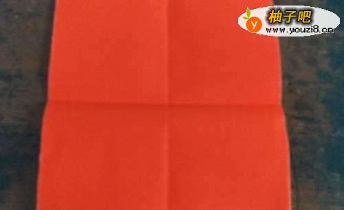 准备好一张正方形红纸,一把剪刀,笔。先把红纸的两边对折。