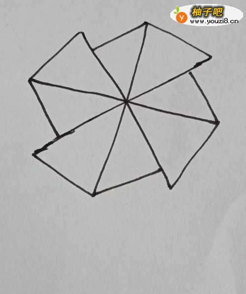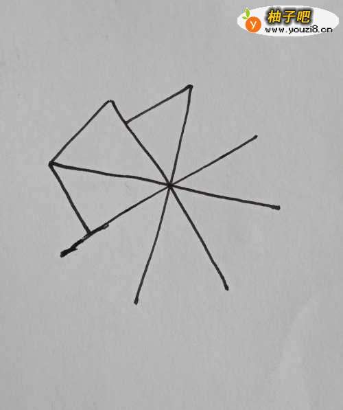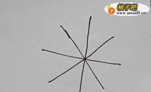 2然后再画两条垂直线,如图所示形成一个米字型。