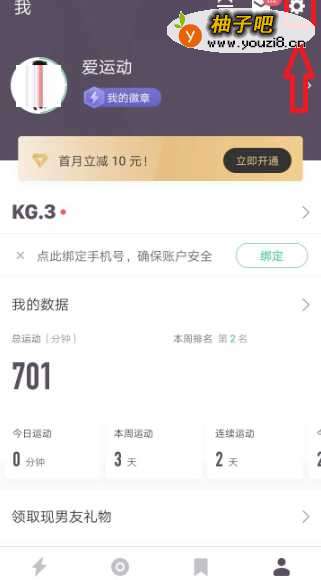 3登录你的keep 的账号,如果没有的话,可以直接用微信登录。然后点击右上角的设置图标