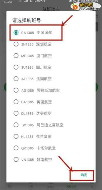 3在”航班号“界面,选择【航空公司】,点击【确定】即可。