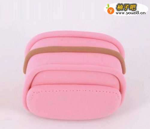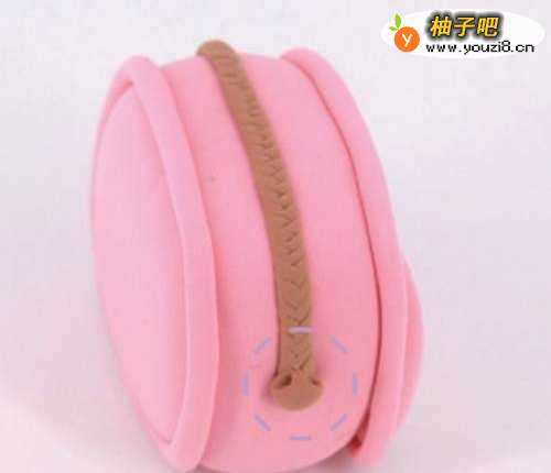 9下面用浅金色黏土制作一个泥条贴在包包中间。