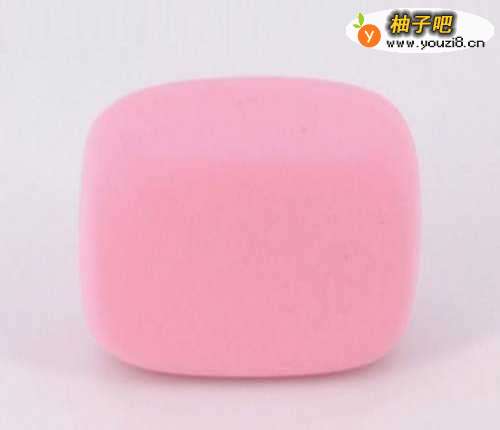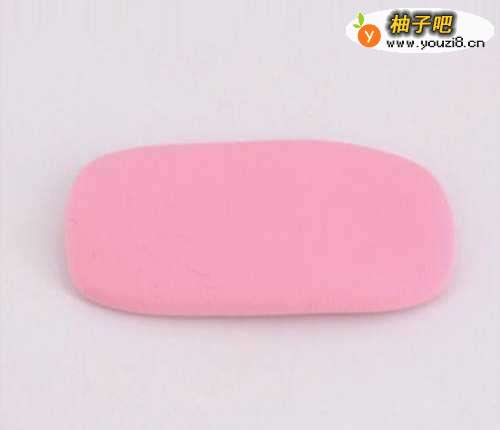 3再准备一块粉色黏土捏成扁方片状。