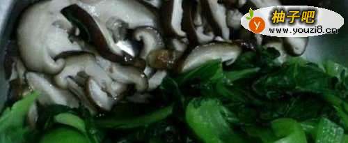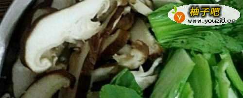 油菜清洗干净切成断儿,香菇去蒂洗净切成片。