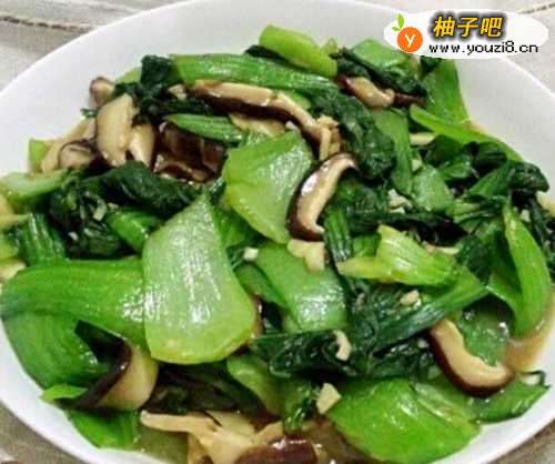 3锅中倒油,油热之后放蒜末炒出香味,倒入香菇和油菜翻炒均匀,加蚝油和盐,翻炒2分钟关火装盘。