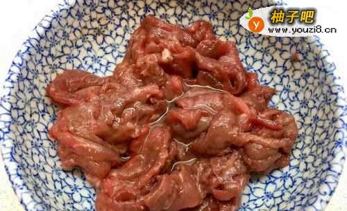 3牛肉从冰箱中取出后淋入油再搅拌均匀