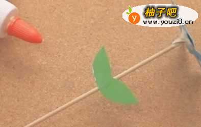 5给花梗加上一些叶子。要制作叶子,你可以仅仅从纸上剪下它们,然后用同色马克笔画出脉络,或者从手工店里买些假叶子,或者甚至可以用绿色的羽毛。然后将它们和花梗粘在一起,你可以用胶带、订书针,亦或用一点胶水。