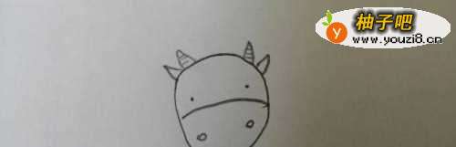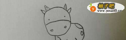 4画出牛的身体,牛脚是可爱的尖尖的。