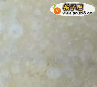2把搅拌均匀的肉末放在面饼上面,大约占四分之一的地方就可以