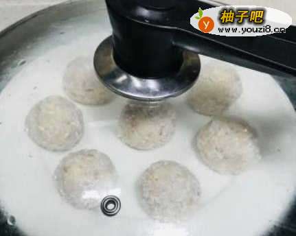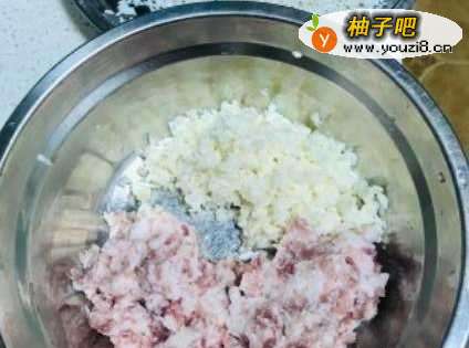 肉末加料酒、酱油、蚝油、生粉、香油、少量食盐调味。与马蹄顺时针搅拌五分钟左右。