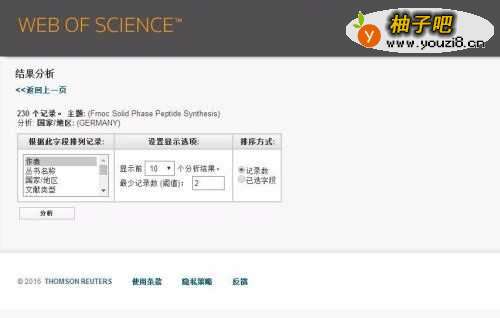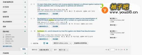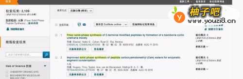 首先打开web of science 在搜索框输入你自己感兴趣的研究方向,右边倒三角一栏选择主题(或者更精确点,直接为标题),如我现在输入:Fmoc Solid Phase Peptide Synthesis
