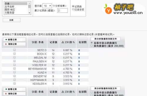 7比如我们想看第一个作者,就在作者名字左边打上对勾(红色标注),点击查看记录(红色标注)