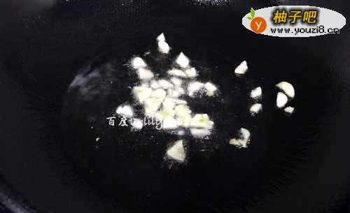 4烧热锅放油,把蒜末放进去炒出香味,放入芹菜。