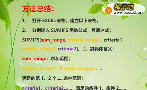 其表达式:SUMIFS(sum_range, criteria_range1, criteria1, [criteria_range2, criteria2], ...)