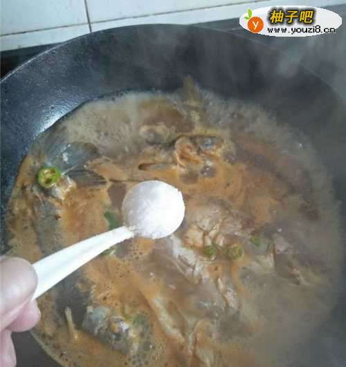 6再下切好的萝卜丝同煮,煎好的鲫鱼经不住久煮的,萝卜丝煮熟后,就可以尝一尝咸淡后关火出锅啦!