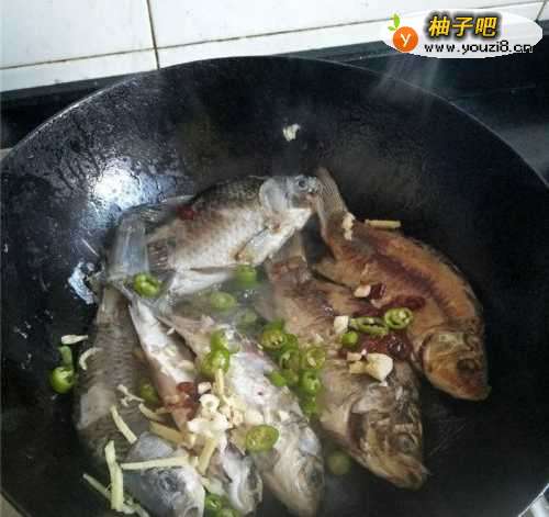 煎第二面时,可以在洒上姜丝、蒜片、青尖椒、豆瓣酱等佐料。