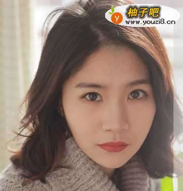 沉稳的深栗色适合肤色偏黄的亚洲人,及肩的中长发简洁容易打理,三七侧分刘海从颧骨处开始卷曲,优美的弧线下的脸庞尤显温柔甜美。