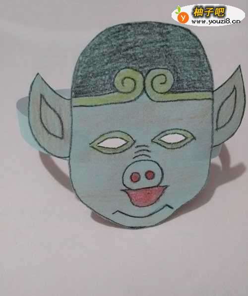 15把纸条固定好以后,猪八戒面具就做好了,好看又好玩。