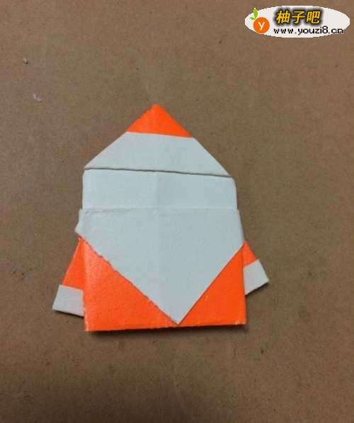 10然后翻过面来,画上眼睛和鼻子。这样圣诞老人就折叠好了。