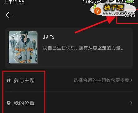 6然后选择是否加入一些话题/是否共享位置,确定后点击右上角的【发布】