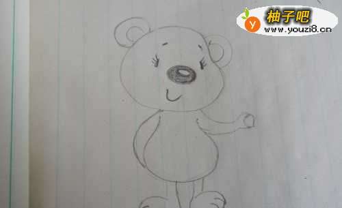 3接下来再把小熊的手脚具体的描绘一下,我还画了一个心形在小熊的身上。