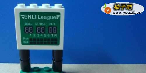2这里先找出一个棒球比赛的记分牌积木作为场景的背景,摆放的位置,如下图所示。