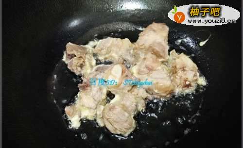 6待排骨外层有金黄色,同时用筷子试试排骨肉,看看是否能够穿透,穿透后就差不多,可以关火装盘了。