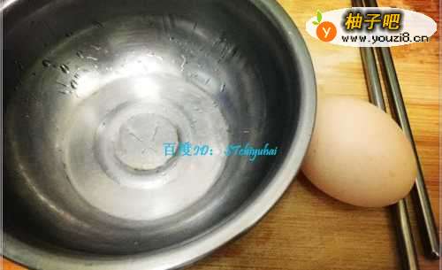 3准备一两个鸡蛋,一个干净的碗,一双筷子,将鸡蛋磕破倒入碗中,加入少许盐巴、淀粉,用筷子将其打匀。