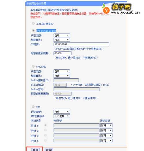5选中“WPA-PSK/WPA2-PSK”选项,在PSK密码栏输入想要修改的密码。