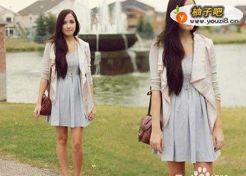 一件不规则的外套真会把人深深吸引住,再穿一件颜色差别不大的连衣裙,整个气质就再秋季中突出。