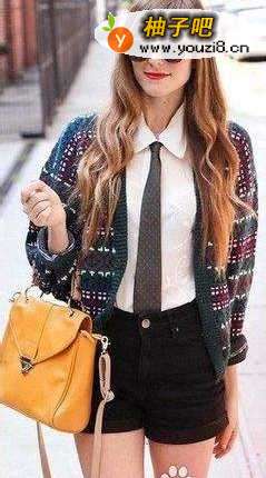 印花的毛衣小外套色彩缤纷,里面穿上淑女的白色衬衫让你在秋季中美丽地做OL。