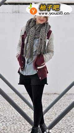 这样的两者打扮使外套的英伦风更明显,在秋季中重回学生时代。