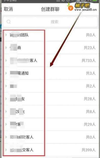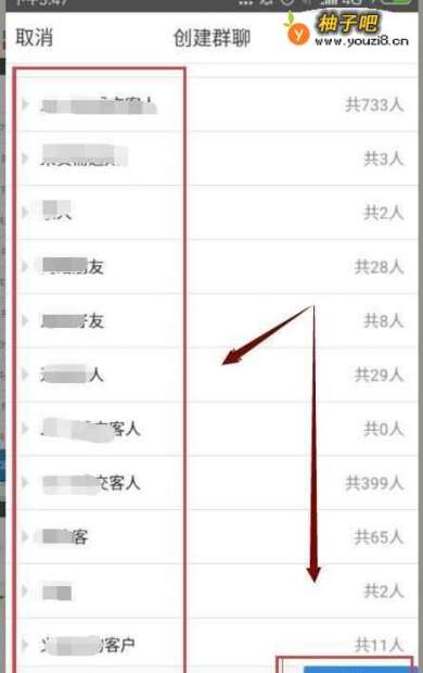 3如下点击的是”创建群聊“按钮,会直接打开如下窗口,在此窗口中按照提示进行选择以往的好友,可以挑选多个并进行创建群聊窗口。