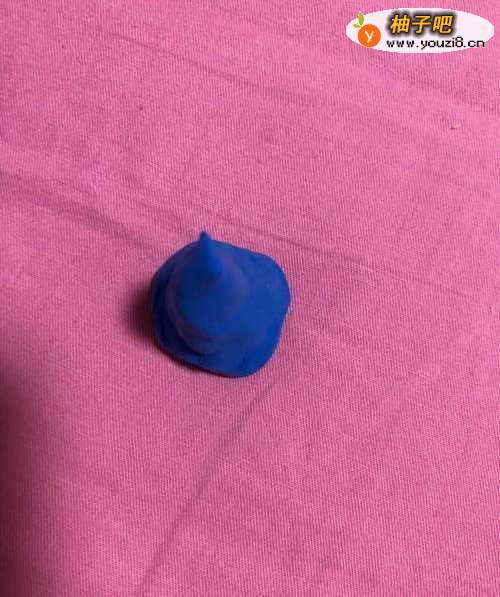 2在拿出蓝色的彩泥揉成棋子形,跟做好的长方体一连接。