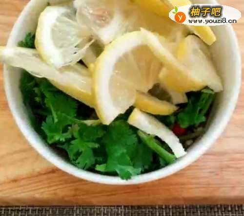 4准备适量蒜末、小米辣、香菜,柠檬片。
