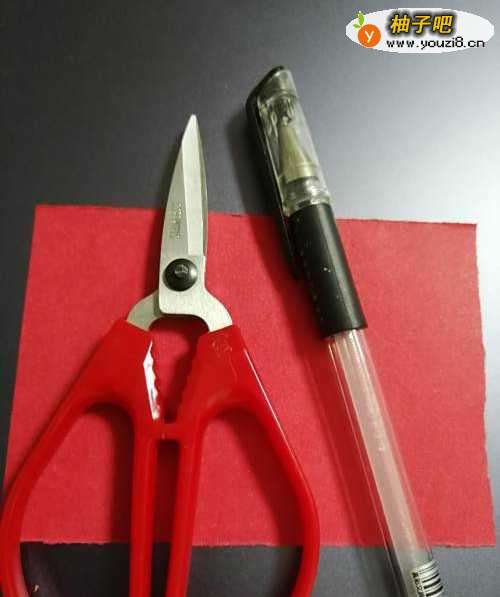 第一步,我们先把需要使用的工具准备出来,需要用到一张纸,一支笔以及一把剪刀。
