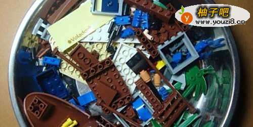 把所需要的积木全部倒在一个铁盘子里,这样在查找积木零件时就会比较方便。而且孩子在盘子里做积木,如果不小心没拼好时,积木也不会掉在地上造成损坏或者丢失。