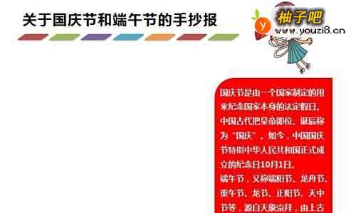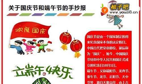 5最后,在【关于国庆节和端午节的手抄报】标题的下方左侧处,画关于国庆节和端午节的相关内容及外框线,如下图所示。