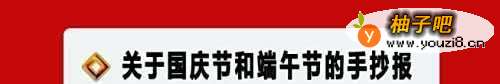 4在【关于国庆节和端午节的手抄报】标题的下方右侧处,在框内写上字,如下图所示。
