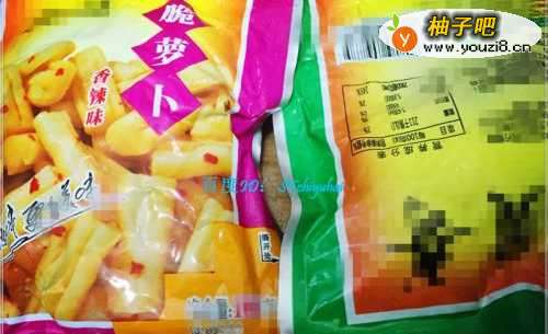 准备1~2包脆萝卜,数量、多少根据各人家庭情况调整,口味也不限制;将脆萝卜开封,取一个大碗,将其放入碗中。