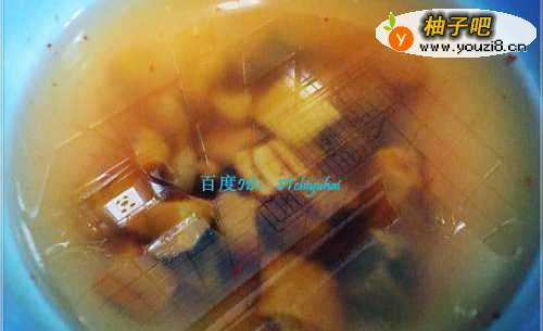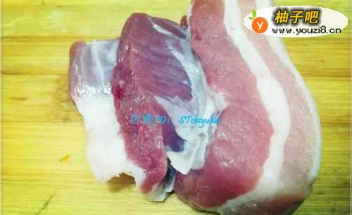 3准备一块去皮腿肉,然后将其清洗干净,放到砧板切成丝状或片状,取一个干净的碗,放入碗中,加入少许盐巴、酱油、料酒、醋、生粉等揉搓腌制一会。