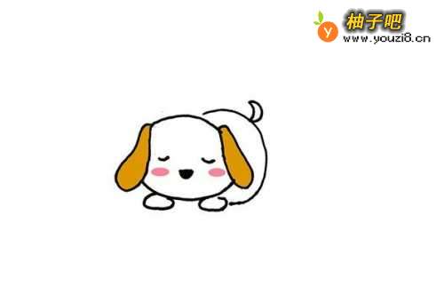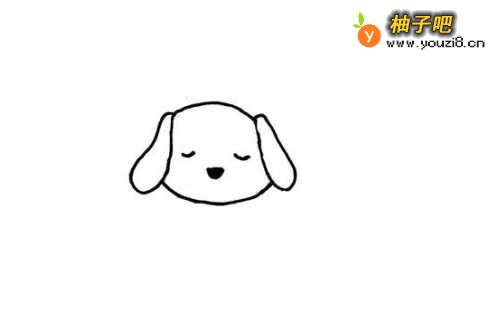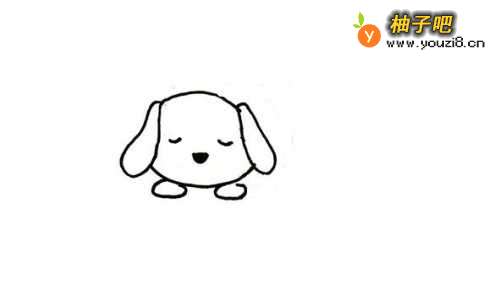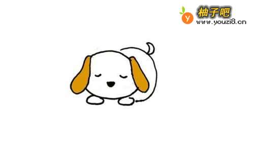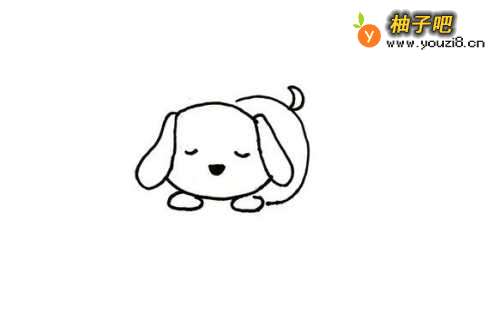 2第二步,因为这只小狗是闭着眼睛的,所以用两个小圆弧来表示,没有画嘴巴,是要表达他是闭着嘴巴的意思