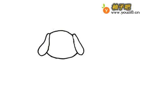 第一步,先画一个圆,在圆的两边画一个和头部等长的狗的脑袋,如图所示
