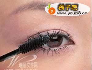 3.用根根分明的纤长睫毛,提升你的性感指数。涂抹睫毛膏时,将睫毛按眼角、正面、眼尾三部呈扇形涂抹,打造全方位的浓密效果。