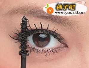2.用睫毛膏重复涂抹睫毛中部至尖端部分,使睫毛更加纤长。