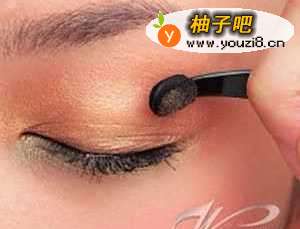 3:用海绵棒晕染内眼角,制造柔和效果。