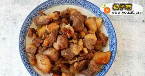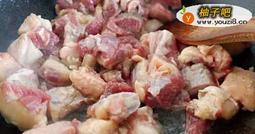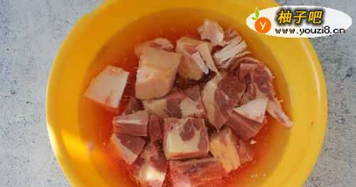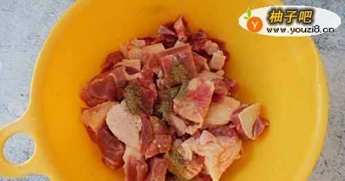 4牛腩沥干水分,加盐和黑胡椒搅拌腌制下
