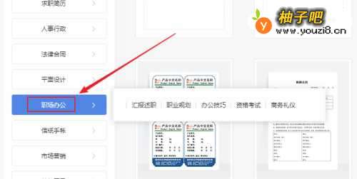 4在打开的文字页面中,点击左侧职场办公。